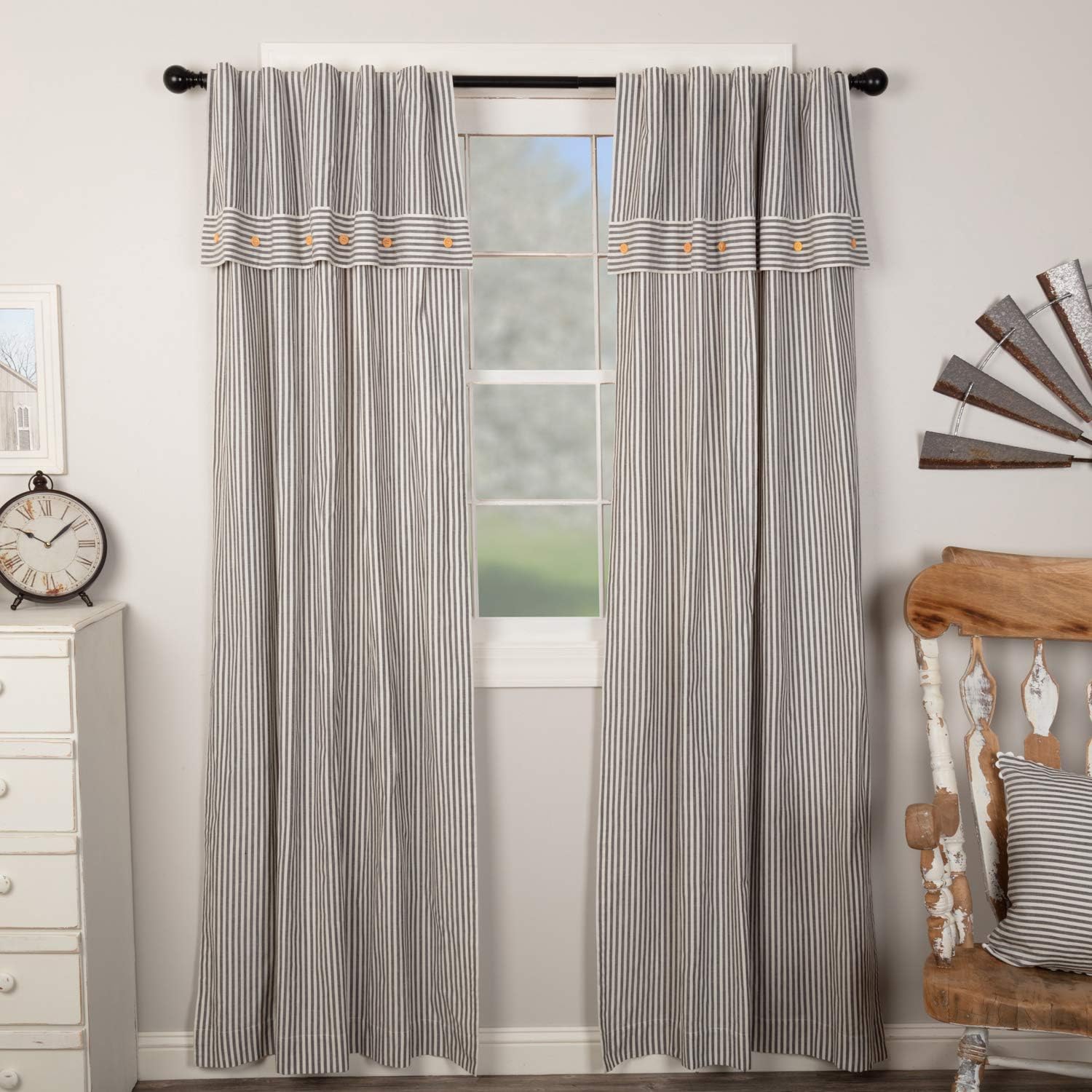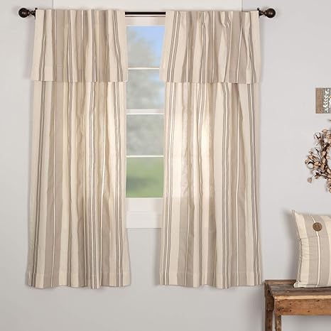 Farmhouse Ticking Taupe Lined Valance Panels 84 Piper Classics
